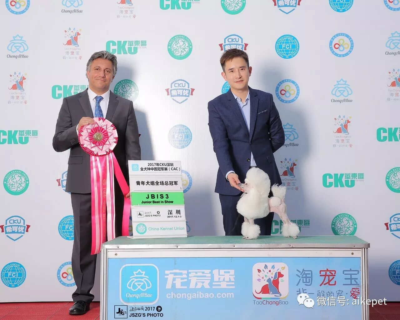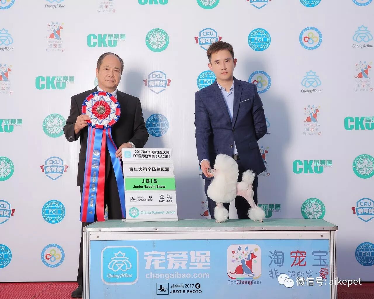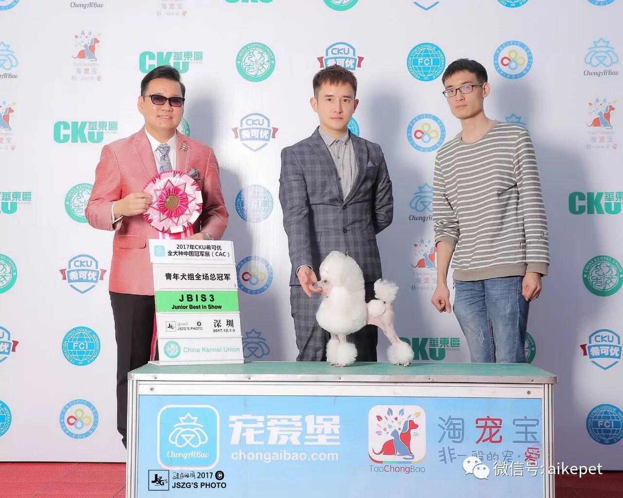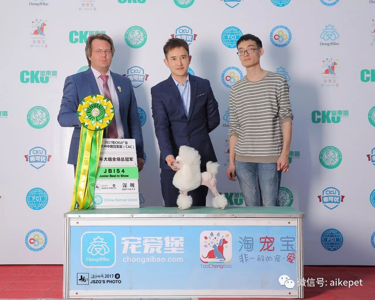 我们繁殖的灰色玩具贵宾犬——灰熊先生,受到来自2个国家的审查员的青睐,在此次犬展中,共报名2场全部入选,一次取得组BBIS(特幼组全场总冠军第1名),